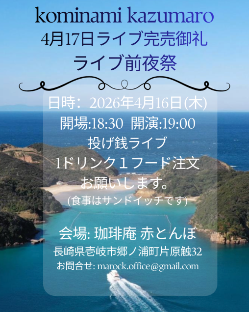 2026年4月16日(木) ライブ完売御礼前夜祭 @郷ノ浦 珈琲庵 赤とんぼ